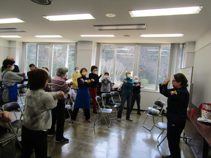 令和8年1月15日「南部いきいきサロン」では前半が川北先生の脳トレ体操、後半はレッツ プレイ ザ オカリナ有志の皆さんによるオカリナ演奏会でした。頭とカラダをほぐした後のギター&オカリナ演奏や合唱はとても心地良いものでした。