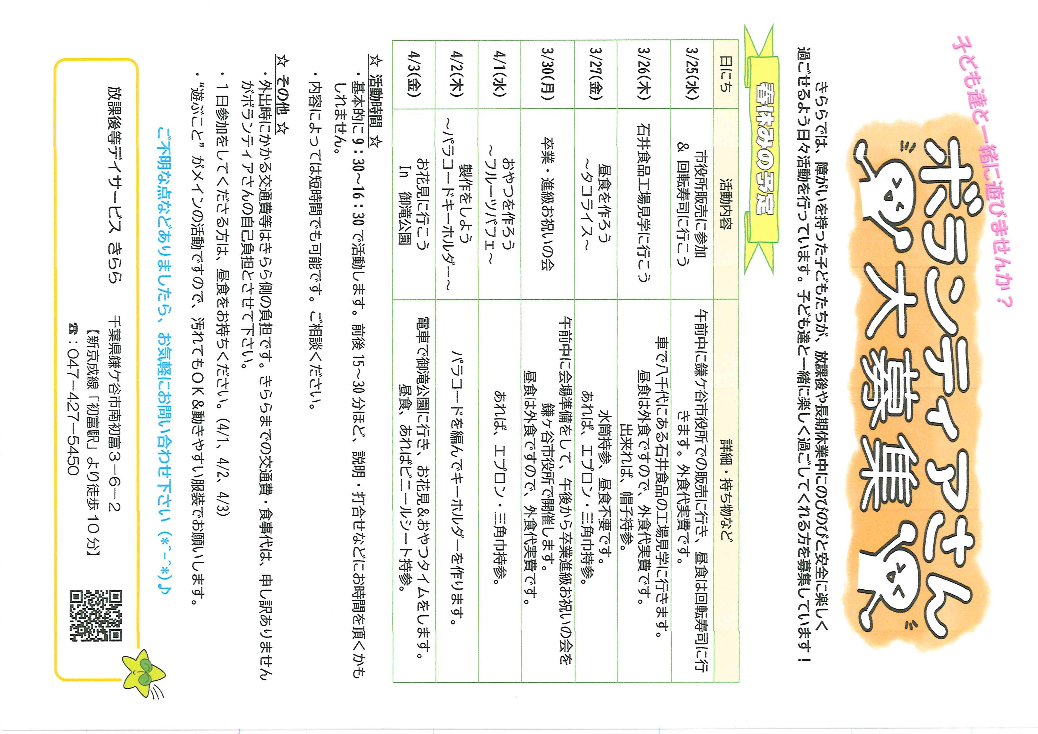 春休み期間中のボランティア募集情報